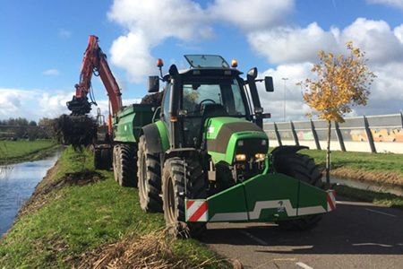 - Maaikrozen voor het opschonen van sloten en tochten met trekker en Herderarm